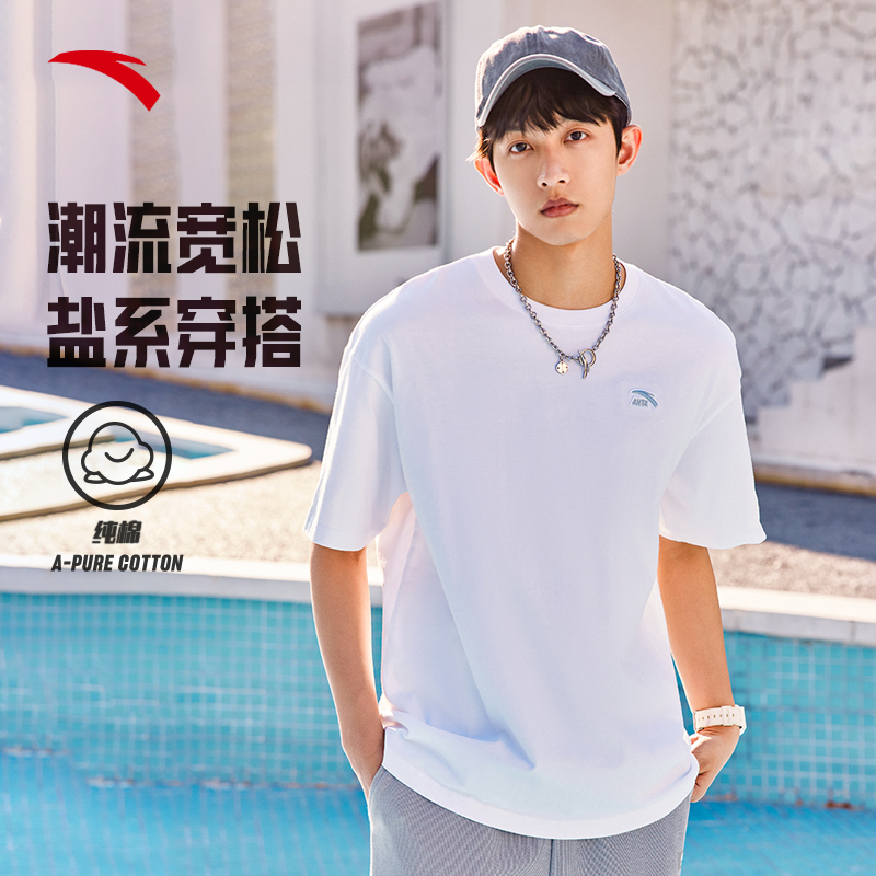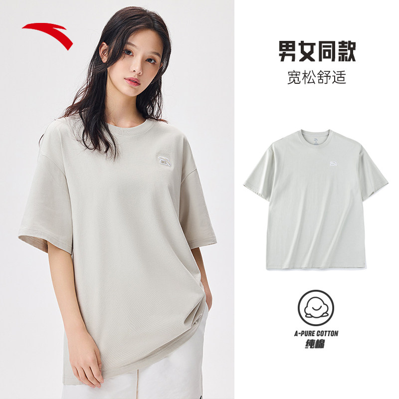 安踏純棉短袖t恤男女同款2023夏季新款簡約寬松純色情侶潮流上衣推廣熱賣行情