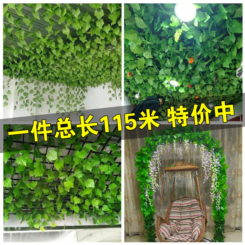仿真葡萄葉綠藤條藤蔓樹葉吊頂花藤裝飾格柵藤蔓塑料假花植物綠葉價格行情