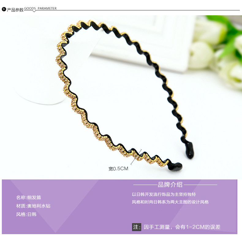 靈巧韓版發(fā)飾時尚簡約波浪紋鑲鉆窄邊細發(fā)箍發(fā)卡發(fā)攏頭飾發(fā)夾頭箍.價格行情