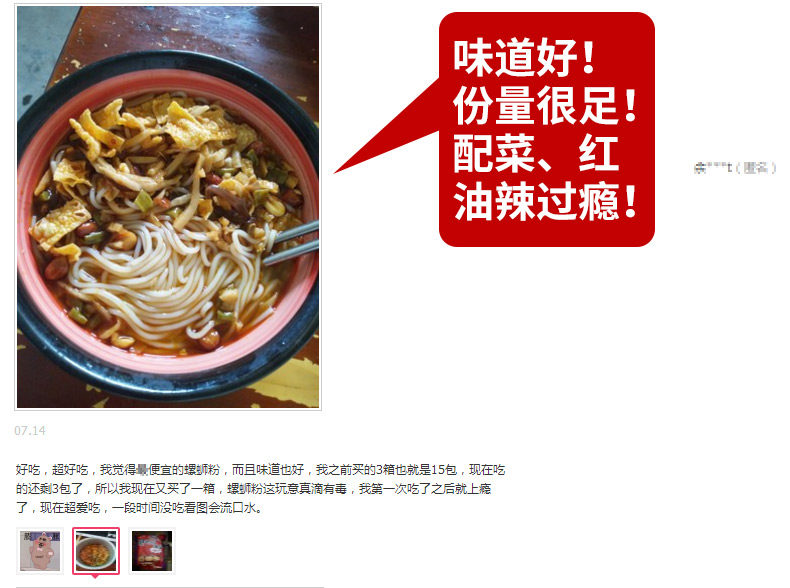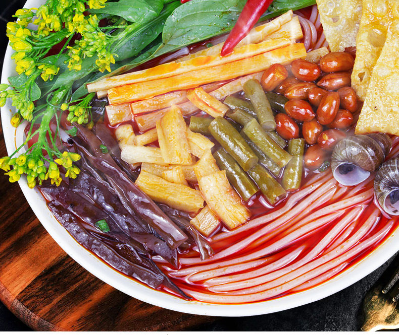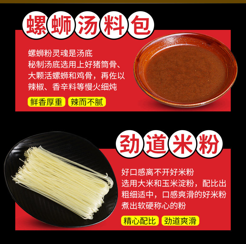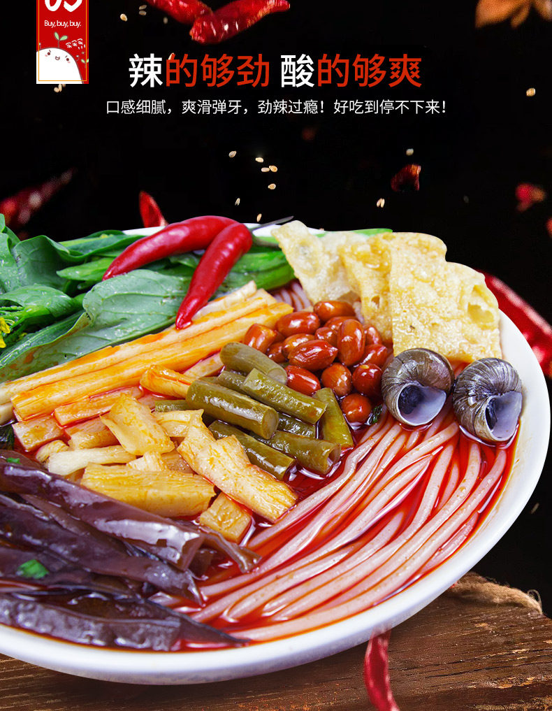 - 配料表:米粉包、湯料包、酸筍、豆角木耳、辣椒油、花生、酸醋