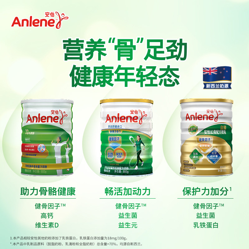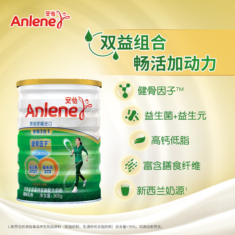 安怡金裝三合一高鈣低脂成人中老年奶粉800g/罐益生元益生菌奶粉推廣熱賣(mài)行情