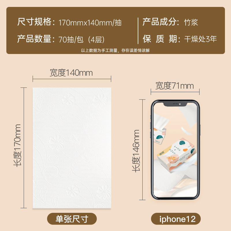 包郵藍漂白色抽紙4層70抽*3/6包氣墊壓花衛(wèi)生紙面巾紙餐巾紙實惠