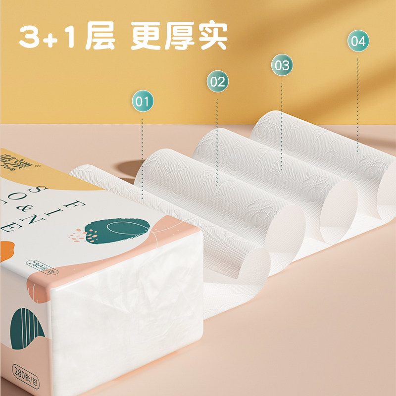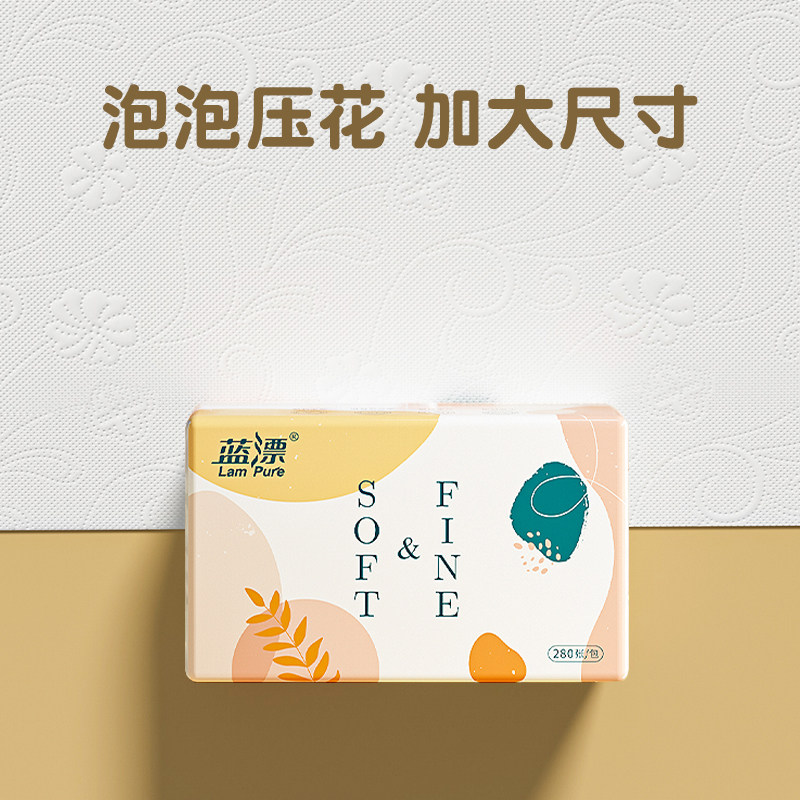 包郵藍漂白色抽紙4層70抽*3/6包氣墊壓花衛(wèi)生紙面巾紙餐巾紙實惠推廣熱賣行情