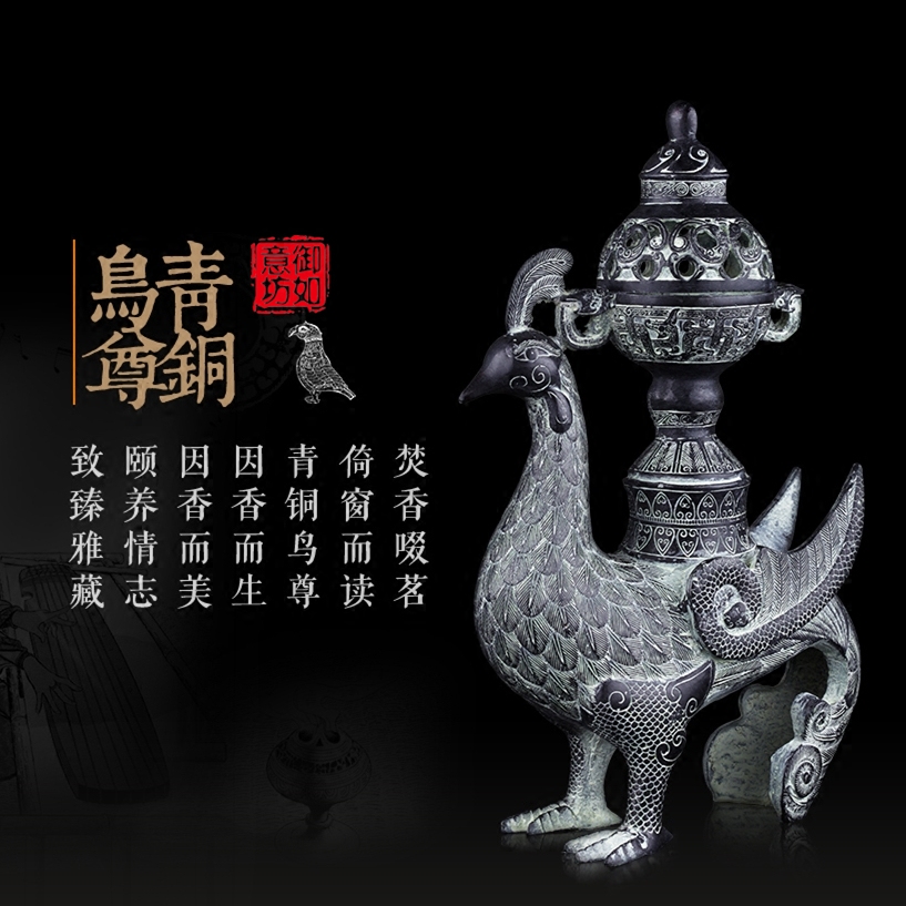 仿古青銅器擺件純銅鳥尊鳥熏爐古玩家居裝飾品復(fù)古熏香爐鳳凰擺設(shè)推廣熱賣行情