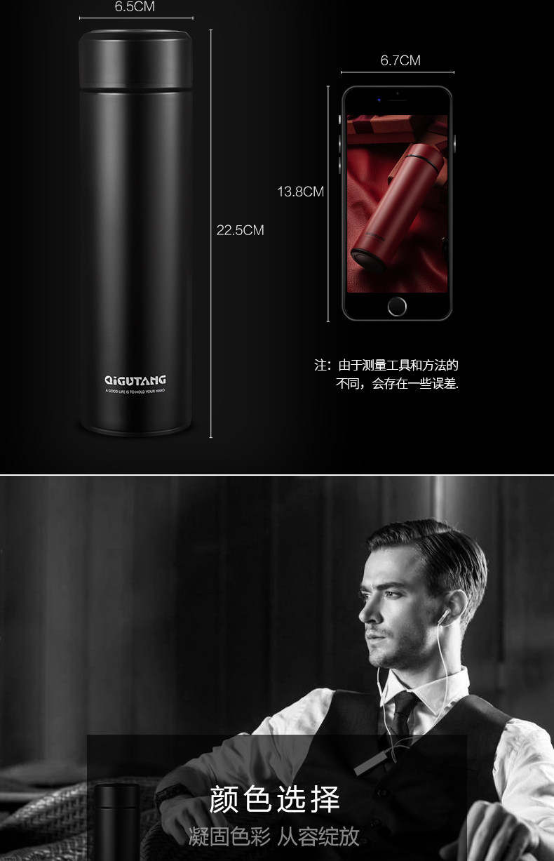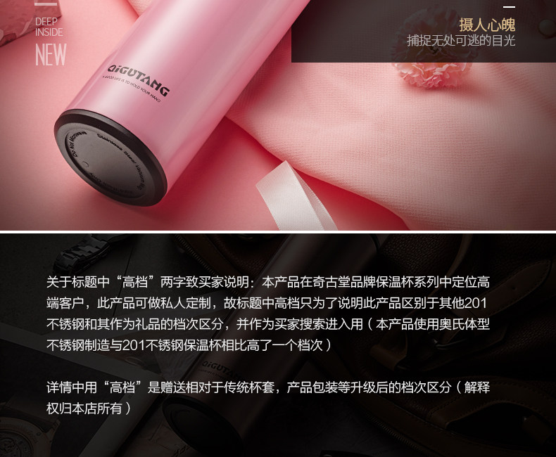 奇古堂不銹鋼保溫杯ins男女士便攜水杯瓶學生大容量茶杯子定制.