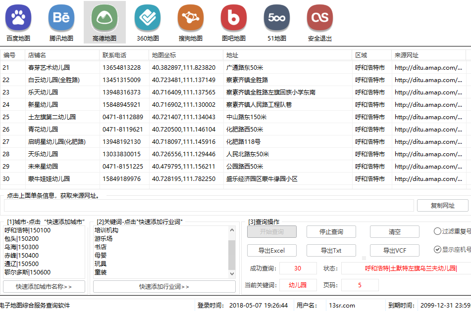 導(dǎo)出格式可選:EXCEL, TXT,以及VCF,默認(rèn)導(dǎo)出為EXCEL,更多內(nèi)容請咨詢客服,可按指定行業(yè)地區(qū)進(jìn)行采集;