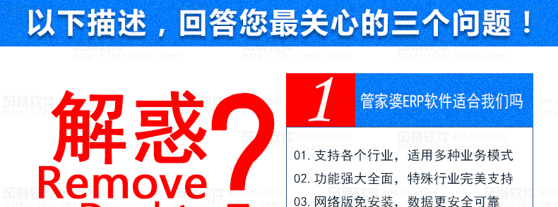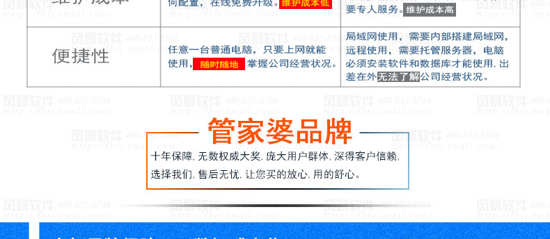 | 問:是單機版?還是網(wǎng)絡(luò)版? | 答:① 本店只賣真正的網(wǎng)絡(luò)版(現(xiàn)在很多說是網(wǎng)絡(luò)版,實則需要自己搭建服務(wù)器,成本高,安全無保障,只能說是“偽網(wǎng)絡(luò)版”,請大家務(wù)必注意); ② 網(wǎng)絡(luò)版,免安裝麻煩,自動免費升級,打開瀏覽器輸入網(wǎng)址即可使用,跟網(wǎng)、郵箱、網(wǎng)銀等一樣方便安全,可以多店、多人、多地同時在線管理哦! ③ 為了您生意的長遠發(fā)展,長遠考慮,請選擇網(wǎng)絡(luò)版,祝您馬年生意欣榮!(現(xiàn)在的大勢所趨,遲早的事情,不如比競爭對手早點用非常先進的哈!) |