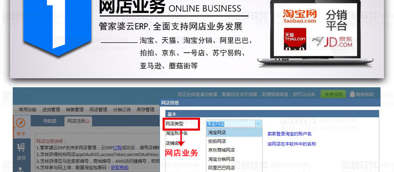 云ERP- | 我要管網(wǎng)店業(yè)務(wù) | 1個網(wǎng)店 | 1個賬號 | 880/年 | 點此購買 |