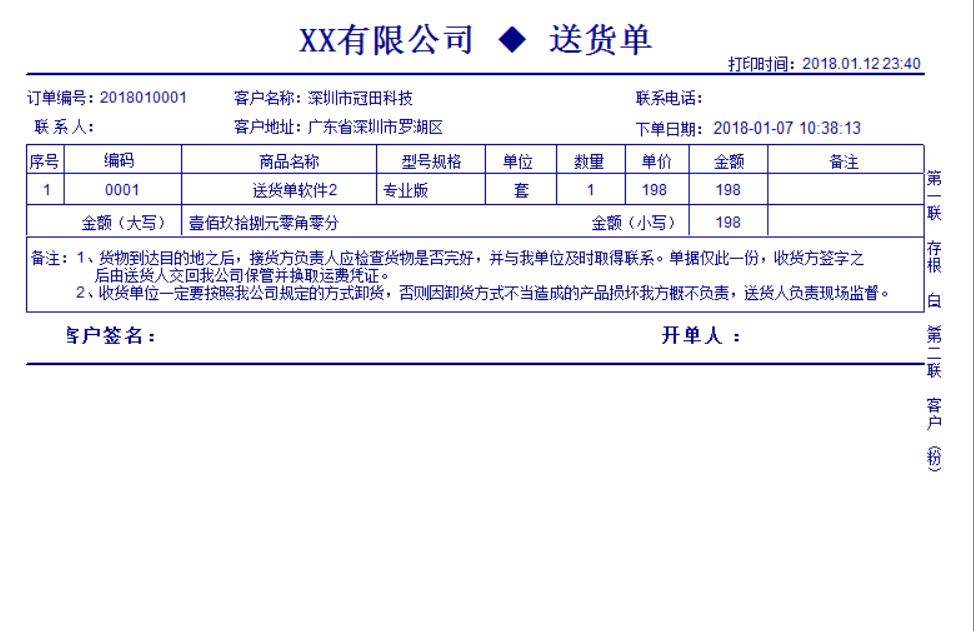 千旺送貨發(fā)貨單出貨單快遞單收據票據單據銷售單套打打印軟件系統價格行情