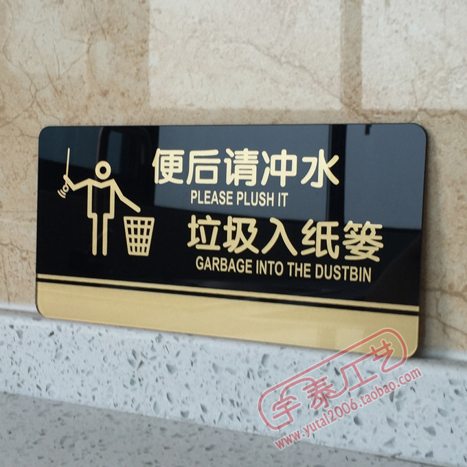 亞克力洗手間便后請沖水標牌 垃圾入紙簍提示牌廁所文明標語現貨推廣熱賣行情