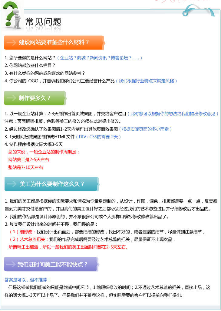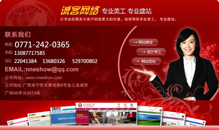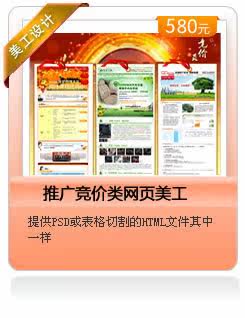 | 網(wǎng)頁美工制作——首頁此為主頁(一頁)的美工制作價格,您提出要求,我們給您報價,達成一致后我們按您的要求設計沛!然后采用 DIV+CSS 的方法切割制作成HTML文件摸版給您! 以下價格為參考價格:實際價格根據(jù)您的要求實際報價。 普通公司網(wǎng)站首頁美工設計作圖:(咨詢特價),只提供PSD圖 推廣競價類網(wǎng)頁美工 (咨詢特價)/頁 |