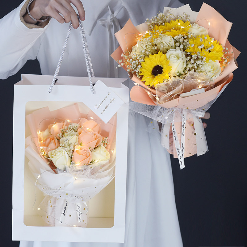生日禮物向日葵花束天然滿天星玫瑰康乃馨香皂干花表白送女友媽媽推廣熱賣行情