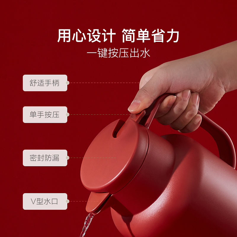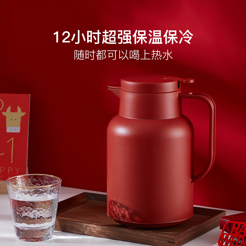 網(wǎng)易嚴選保溫壺結(jié)婚暖壺紅色陪嫁一對玻璃內(nèi)膽開水壺家用熱水瓶壺推廣熱賣行情