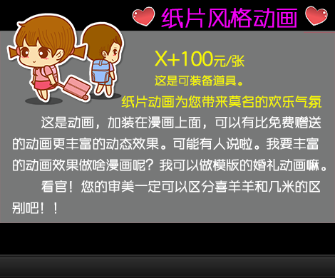 1.卡通形象成品提供:300像素的jpg/png 1.卡通形象成品提供:300像素的jpg/png 2.婚禮logo/迎賓牌設(shè)計(jì)成品提供:足夠打印尺寸的300像素jpg/png 3.動(dòng)畫成品提供:高清mp4視頻格式 4.如果拍下,設(shè)計(jì)師已經(jīng)開始制作,臨時(shí)改變主意不要只能退還一半價(jià)格哦! 5.制作完成后,不得以任何理由退款。因?yàn)槲覀兏冻隽诵量嗟墓ぷ鳎夷粷M意的作品對您以后的設(shè)計(jì)也會(huì)提供很大的設(shè)計(jì)參考,不得因此給出中評和差評。非常終實(shí)在無法修改到您滿意,非常多退款10%,不提供源文件。(同時(shí)找多家設(shè)計(jì)者不得退款!) 6.請確定自己想要設(shè)計(jì)的東西,慎重給出設(shè)計(jì)要求。別讓設(shè)計(jì)師都弄出來看效果再?zèng)Q定,已經(jīng)根據(jù)客戶要求設(shè)計(jì)好,又需要更換文字/風(fēng)格需要根據(jù)難易度增加設(shè)計(jì)費(fèi)。如果設(shè)計(jì)已經(jīng)完成,推翻原有設(shè)計(jì)重新收費(fèi)。請理解設(shè)計(jì)師的苦心。^_^ 7.我們擁有作品作為宣傳用的展示權(quán),如果不讓展示請下訂單前說明。 ★★★購買我們的設(shè)計(jì)則表示同意以上協(xié)議,認(rèn)同我們的設(shè)計(jì)風(fēng)格,請不要給出中評或者差評,謝謝合作。  郵件:黑漆漆滴小鬼 QQ6(注明)