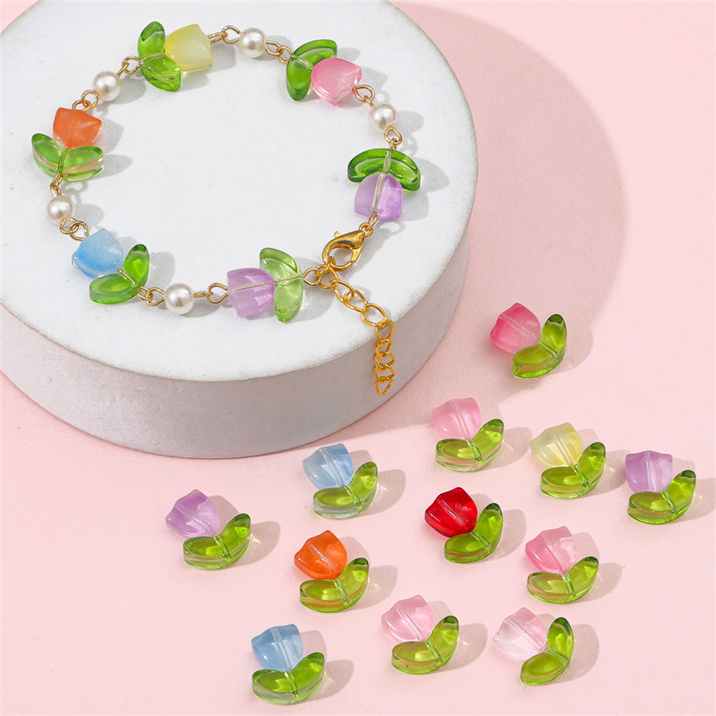 果凍粉漸變玻璃郁金香花瓣串珠材料DIY手作手鏈耳環(huán)飾品配件發(fā)簪推廣熱賣行情