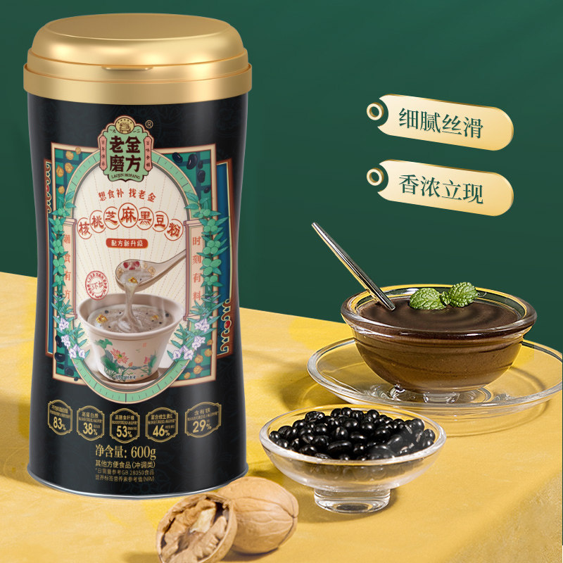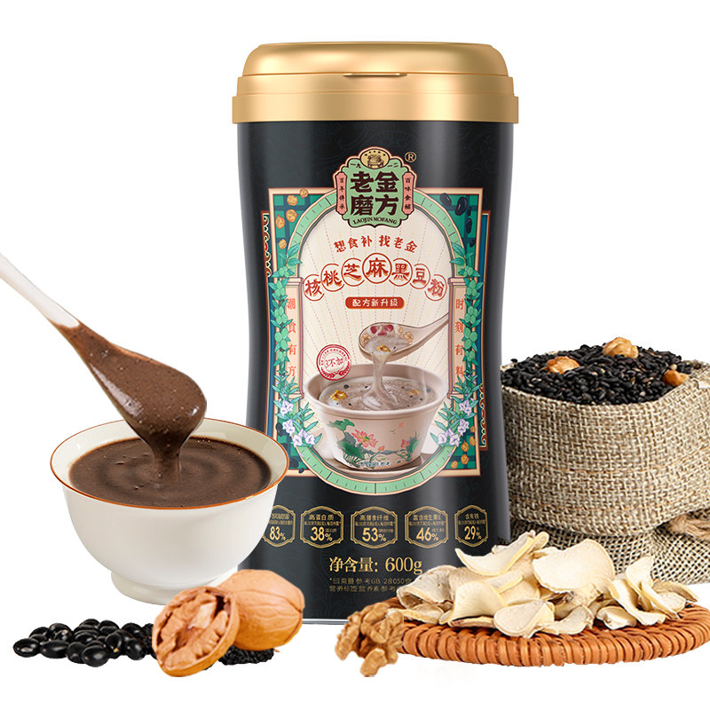 老金磨方黑芝麻糊核桃黑豆粉黑芝麻粉桑葚代餐飽腹燕麥孕婦早餐正推廣熱賣行情