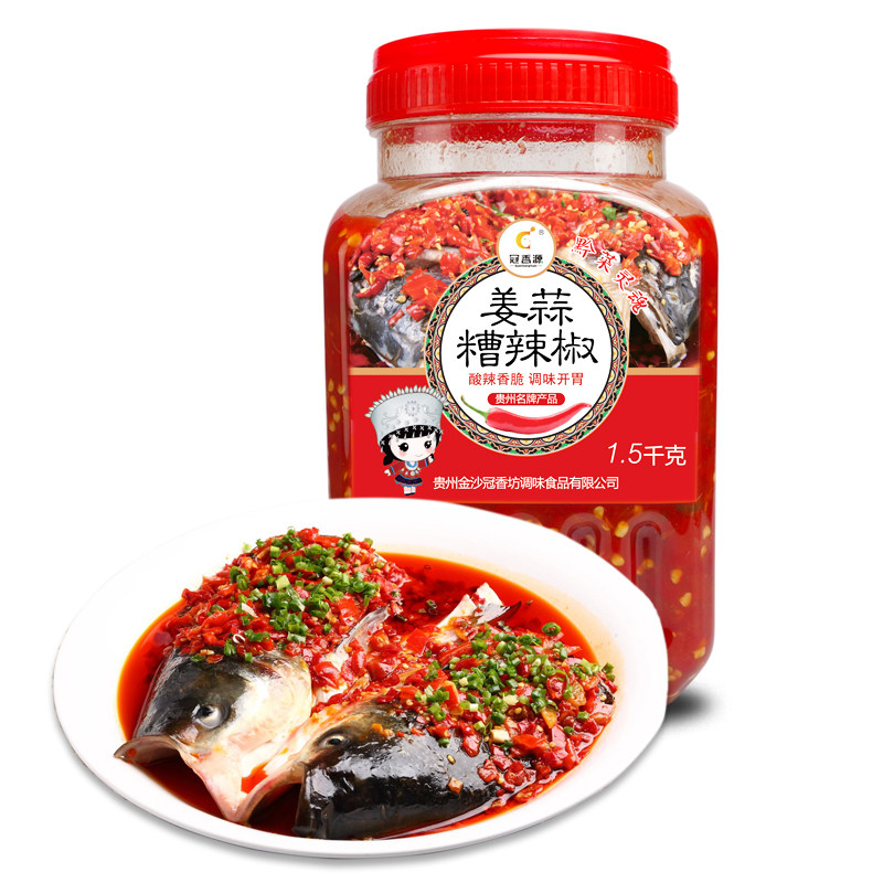 貴州特產(chǎn)冠香源姜蒜糟辣椒3斤剁椒魚(yú)頭專(zhuān)用醬酸辣椒自制農(nóng)家調(diào)料推廣熱賣(mài)行情