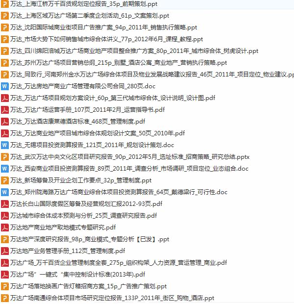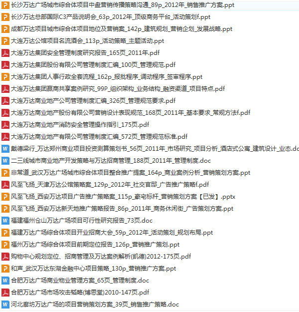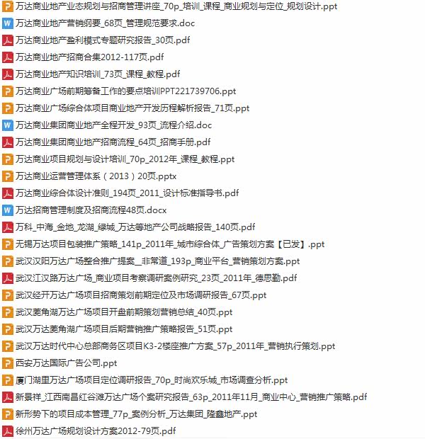 萬達(dá)方案合集 前期策劃 調(diào)研報(bào)告 管控體系 招商 銷售推廣 管理1000個(gè)文檔