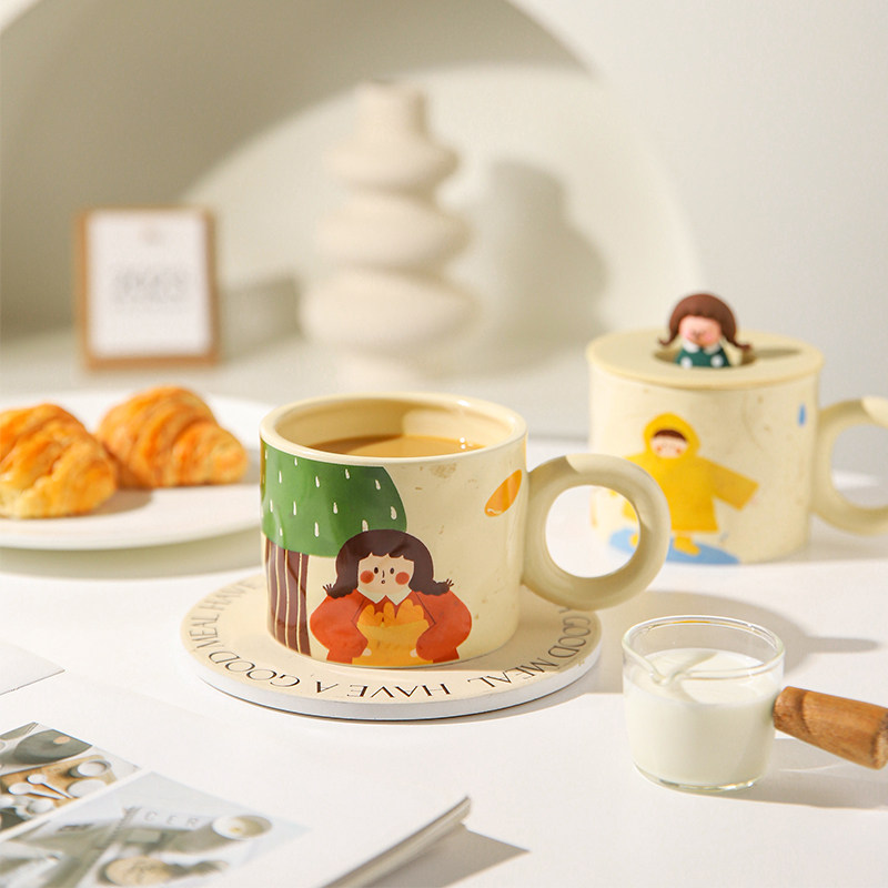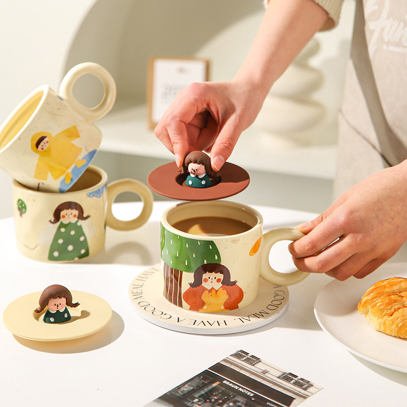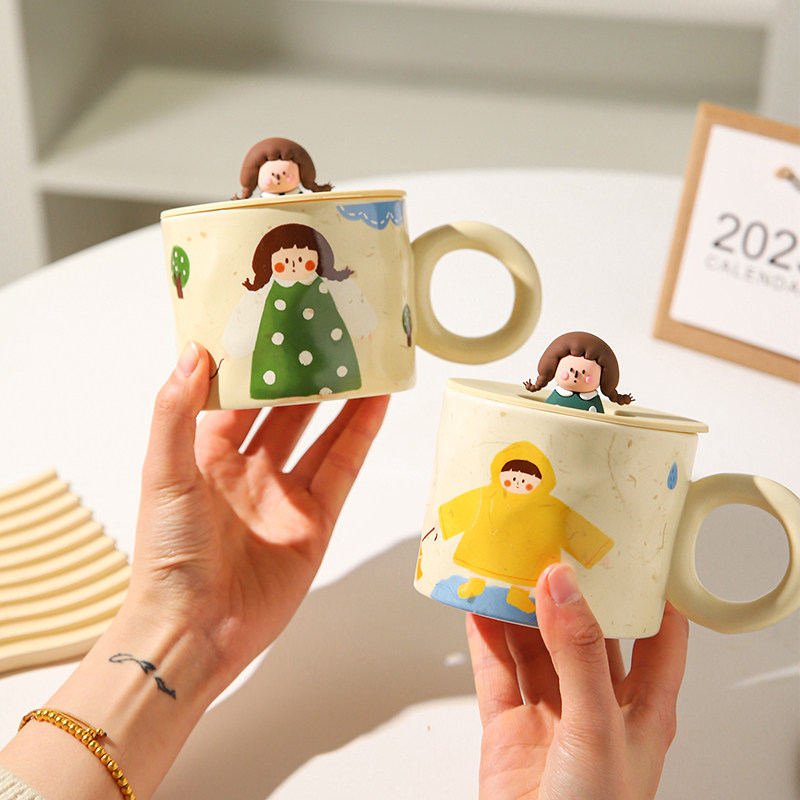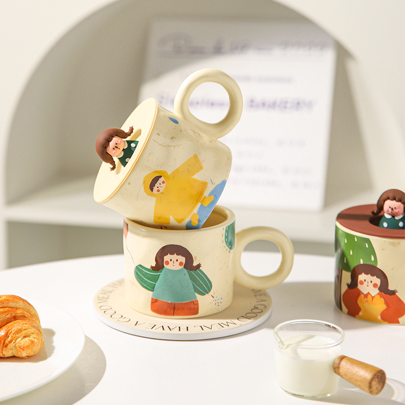 舍里可愛杯子女生帶蓋馬克杯情侶水杯家用高顏值陶瓷早餐杯咖啡杯推廣熱賣行情