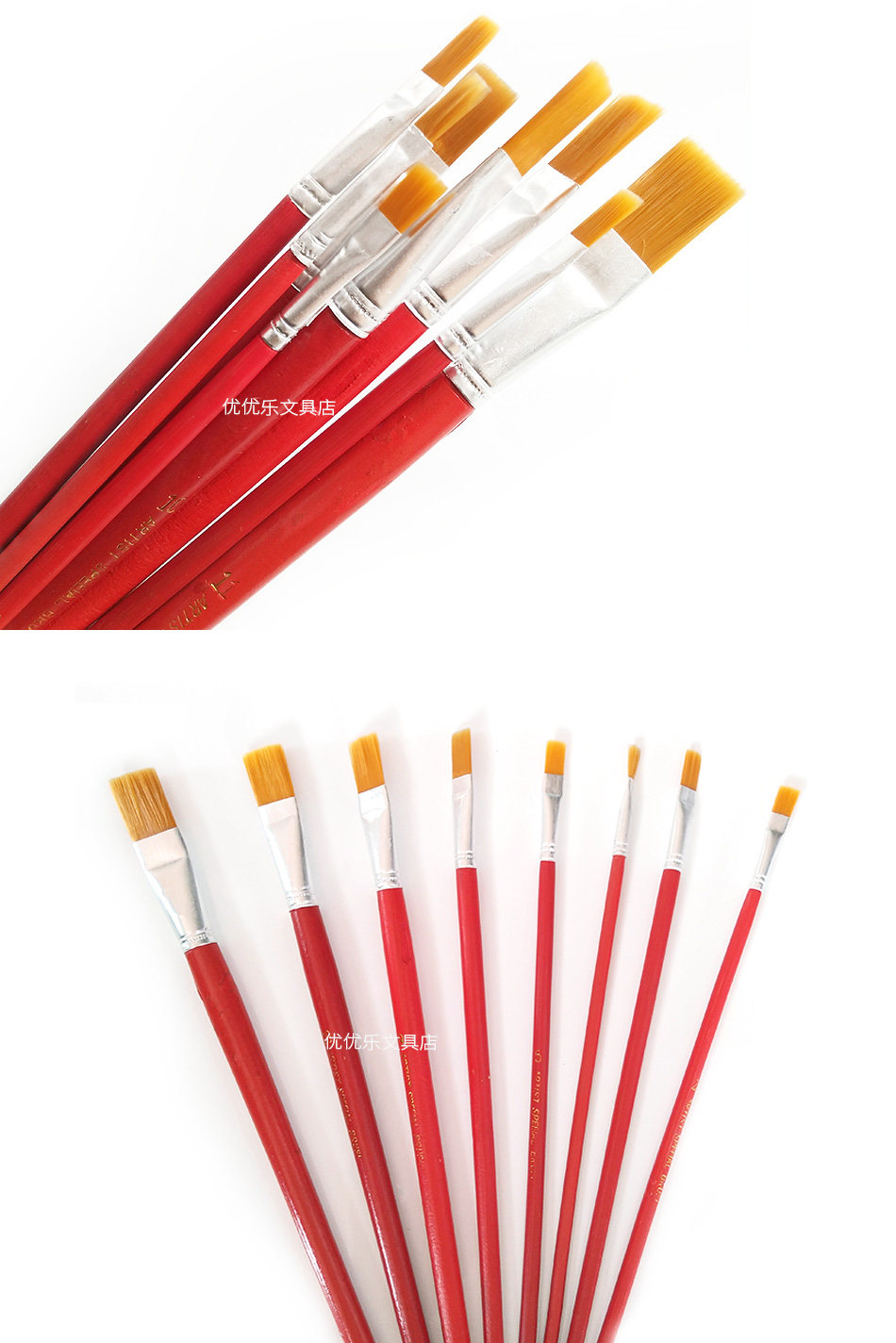18元包郵平頭尼龍毛紅桿油畫筆刷膠水刷油漆刷白桿油畫畫筆112號推廣熱賣行情