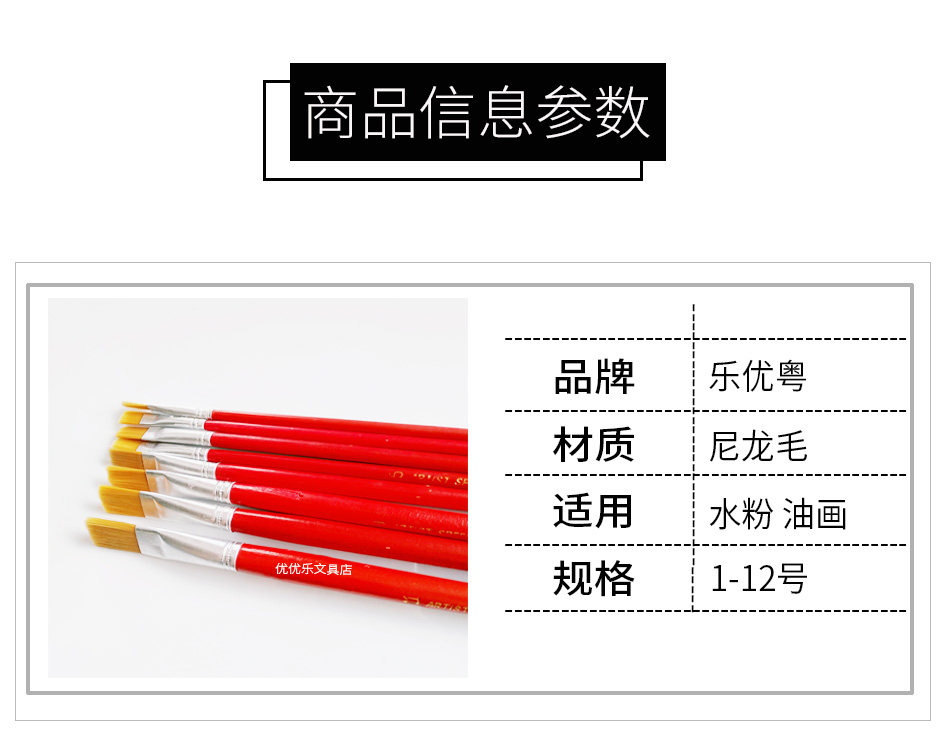 18元包郵平頭尼龍毛紅桿油畫筆刷膠水刷油漆刷白桿油畫畫筆112號價格行情