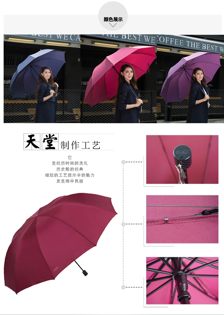 天堂傘 雨傘廣告定制折疊超大傘雨傘女雨傘男雙人純色商務(wù)晴雨傘推廣熱賣行情