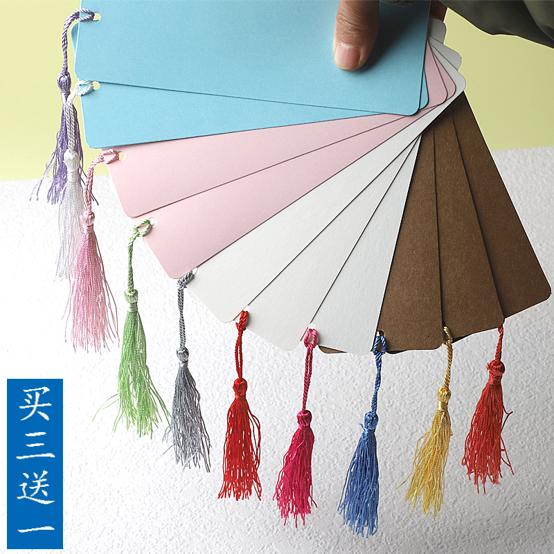 創(chuàng)意全空白圓角書簽小學生DIY古風牛皮紙白卡打孔24張入包郵定制價格行情
