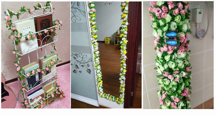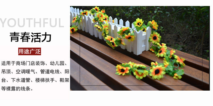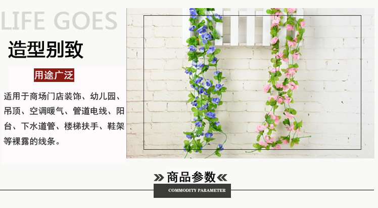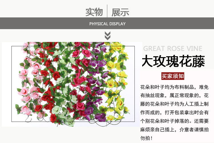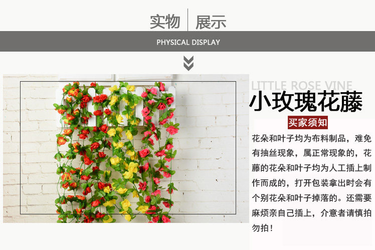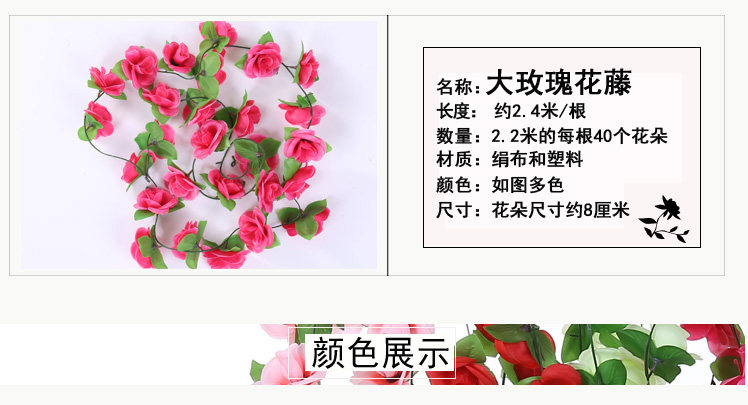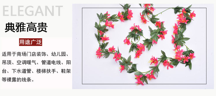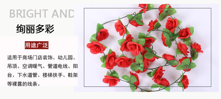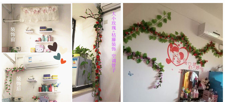 室內(nèi)仿真玫瑰花藤假花管道客廳裝飾吊頂塑料空調(diào)管裝飾遮擋花藤條推廣熱賣行情