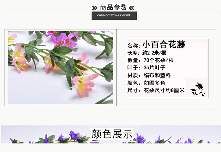 - 顏色分類:2.2米長小玫瑰,藍色2.2米長小玫瑰,白底粉2.2米長小玫瑰,紫色2.2米長小玫瑰,大紅色2.2米長小玫瑰,玫紅色2.2米長小玫瑰,桔色2.5m長小玫瑰,全粉色2.5m長小玫瑰,奶白2.4米長大玫瑰,粉色2.4米長大玫瑰,奶白2.4米長大玫瑰,紫色2.4米長大玫瑰,大紅2.4米長大玫瑰,黃色2.4米長大玫瑰,玫紅2.4米長大玫瑰,顏色隨機發(fā)2.2米長小百合花藤,玫紅色2.2米長小百合花藤,粉色2.2米長小百合花藤,紫色2.2米長小百合花藤,大紅色2.2米長小百合花藤,白色2米長,70朵小太陽花其他顏色白色黃色