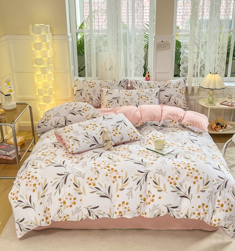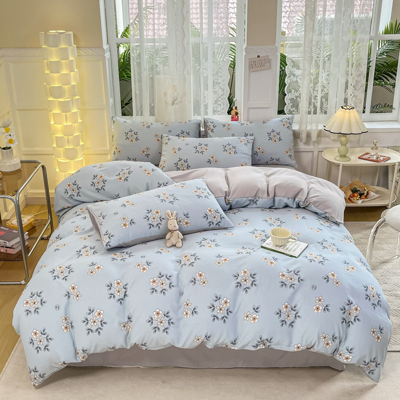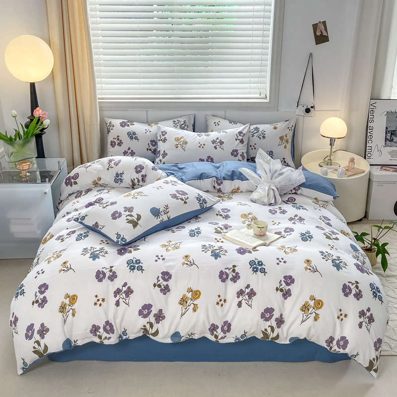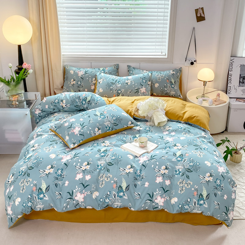 A類水洗棉麻四件套床上用品雙層紗被套碎花床單三件套4