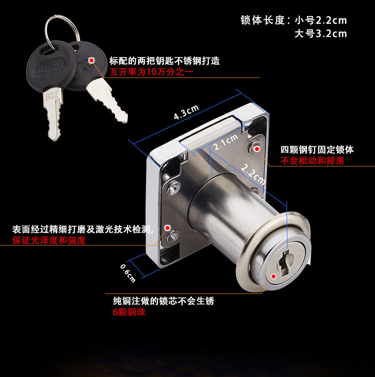 電腦辦公桌抽屜鎖檔案文件柜鎖家具五金衣柜子柜門鎖加長柜臺柜鎖價格行情