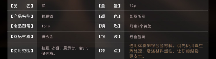 - 類型:抽屜鎖