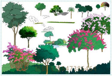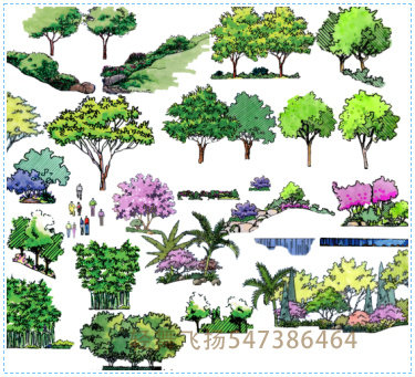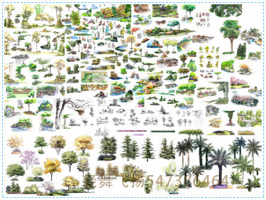 園林景觀彩平圖PSD素材植物手繪輔裝PS后期立面平面設(shè)計效果圖55P價格行情