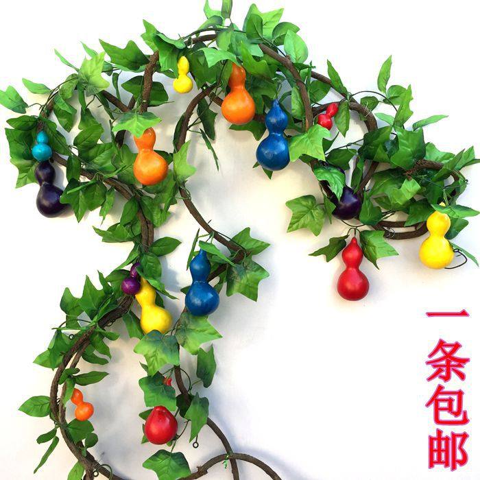 。仿真水果藤條葡萄葉藤蔓吊頂裝飾假塑料葫蘆藤條管道裝飾壁掛花推廣熱賣行情