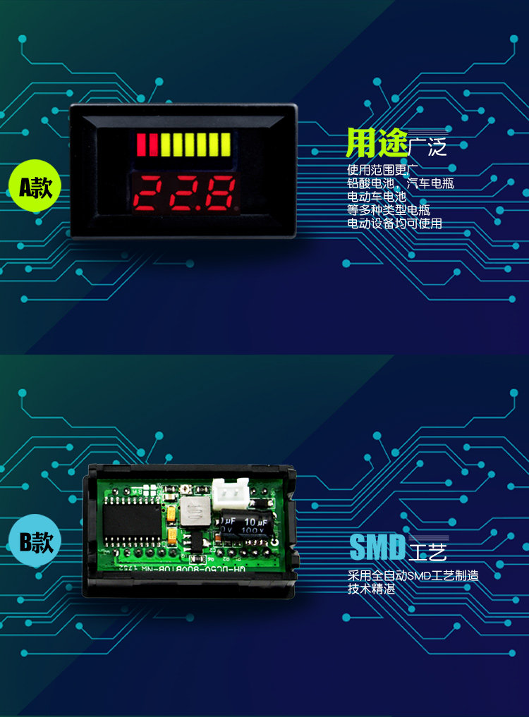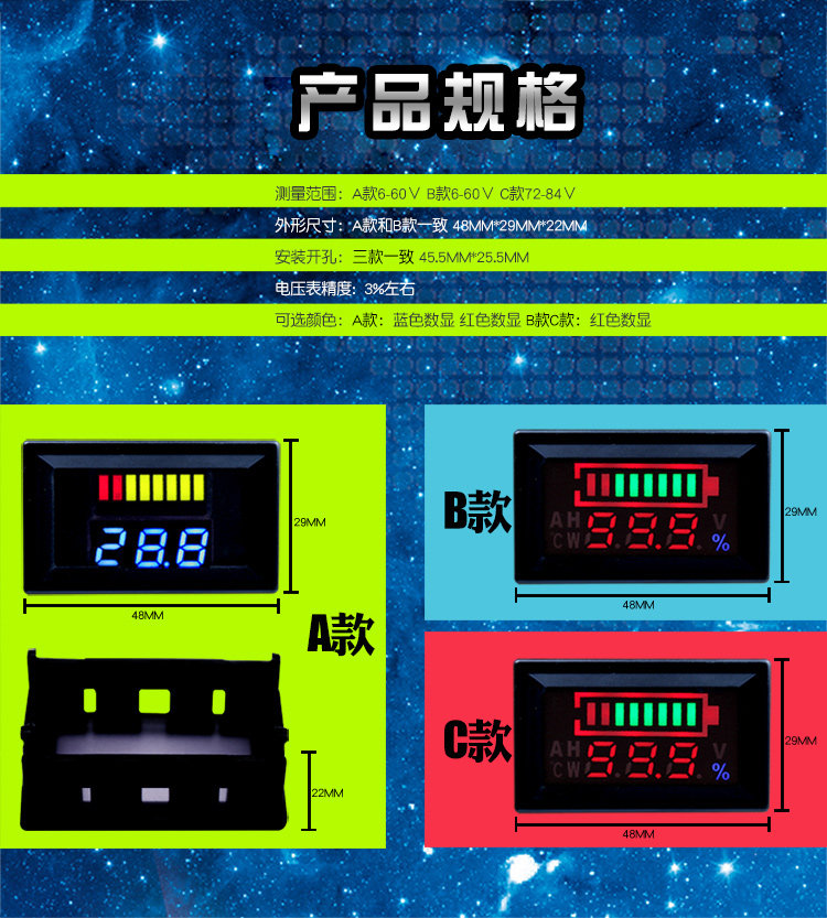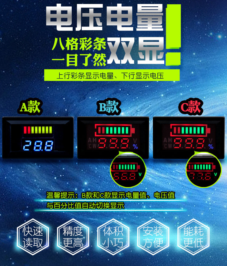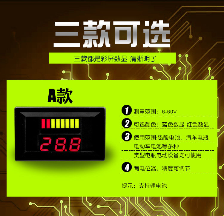 電動(dòng)車12V72V電瓶蓄電池電量表顯示直流數(shù)顯電汽車車載支持鋰電推廣熱賣行情