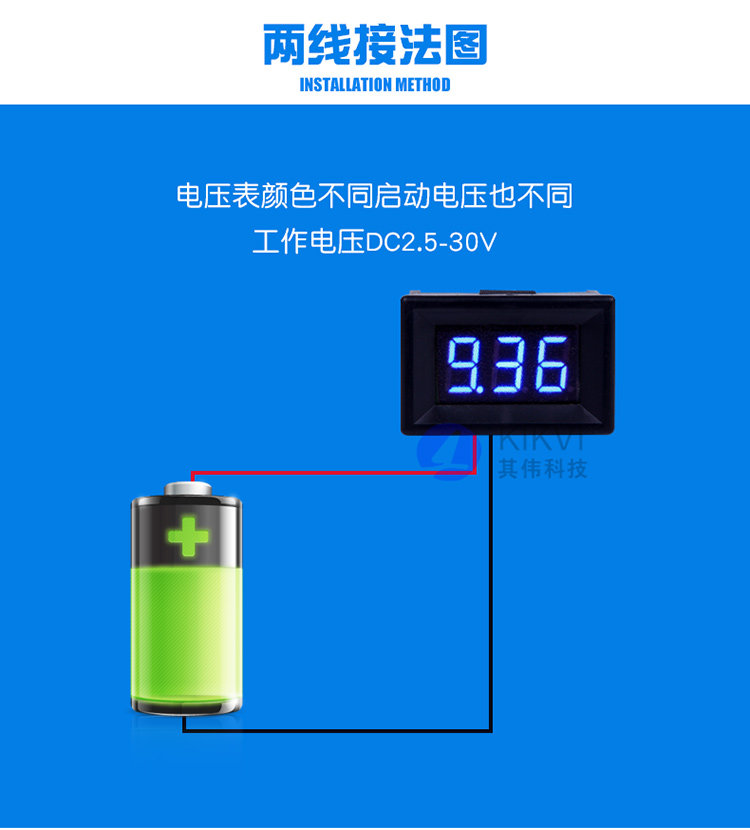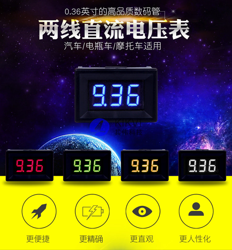 電壓表直流數(shù)顯數(shù)字表頭二線2.530V可調(diào)摩托電動車高精度防反接
