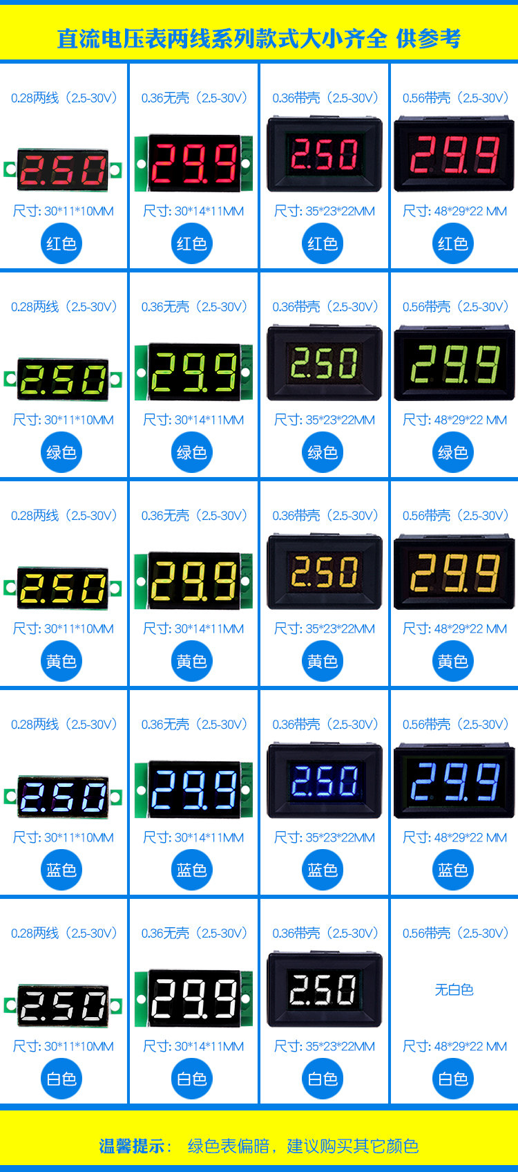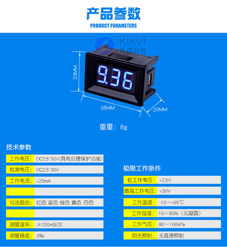 電壓表直流數(shù)顯數(shù)字表頭二線2.530V可調(diào)摩托電動車高精度防反接推廣熱賣行情