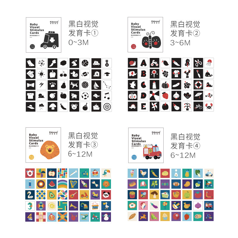 黑白卡片嬰兒早教卡0到3個(gè)月新生的兒益智寶寶彩色閃卡視覺(jué)激發(fā)卡