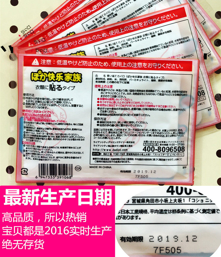 友情提示:包裝上的標明的發(fā)熱溫度了持續(xù)時間,并非是指在自然通風條件下熱片表面的溫度和發(fā)熱時間,而是在特定的封閉條件下測量得到的數據。根據日本標準,是在有多層棉織品覆蓋下,經過一定時間的放熱的溫度和保暖時間得到的數據。由于我們使用的環(huán)境不同,因此和我們實際使用時感覺到的溫度和時間有一定的差矩,請大家周知。