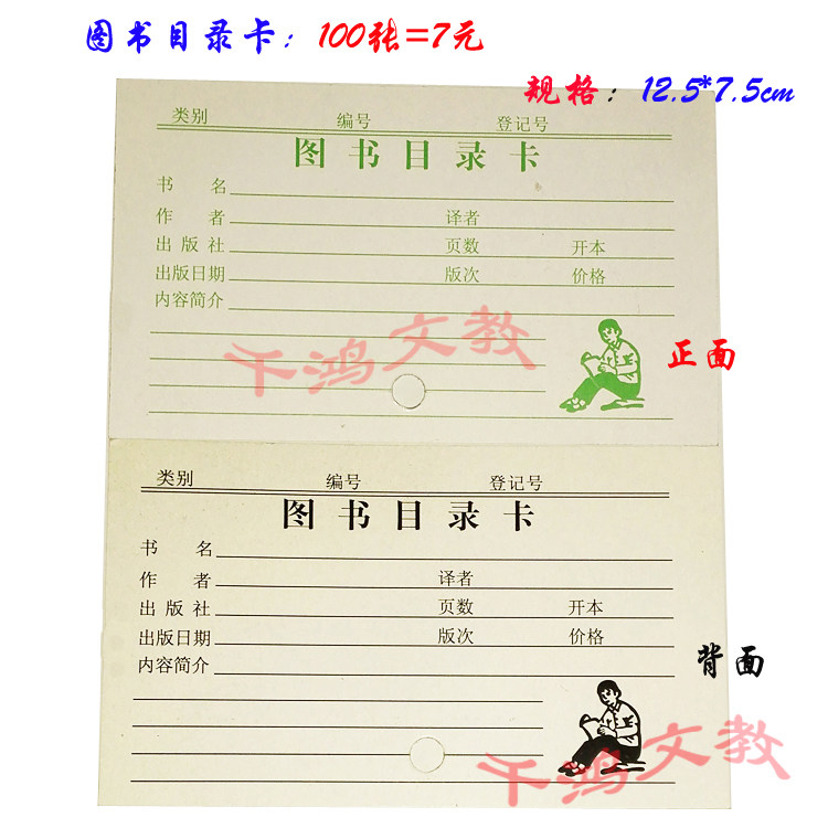 借書卡/借書登記卡/借書袋/圖書目錄卡/圖書館借閱卡/借書證100套價格行情