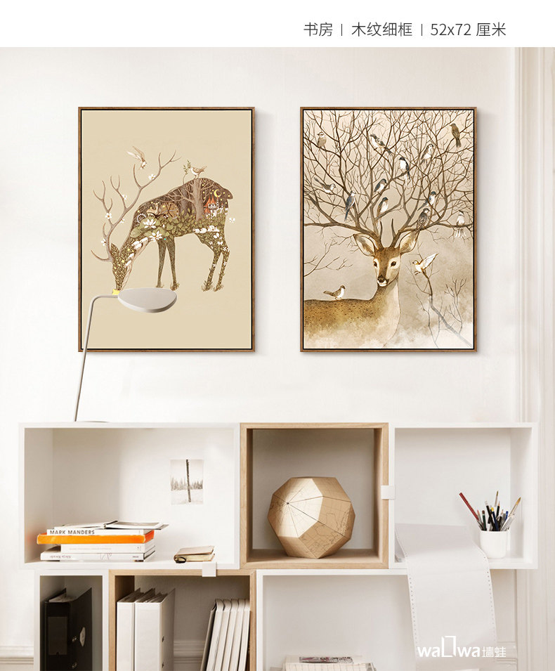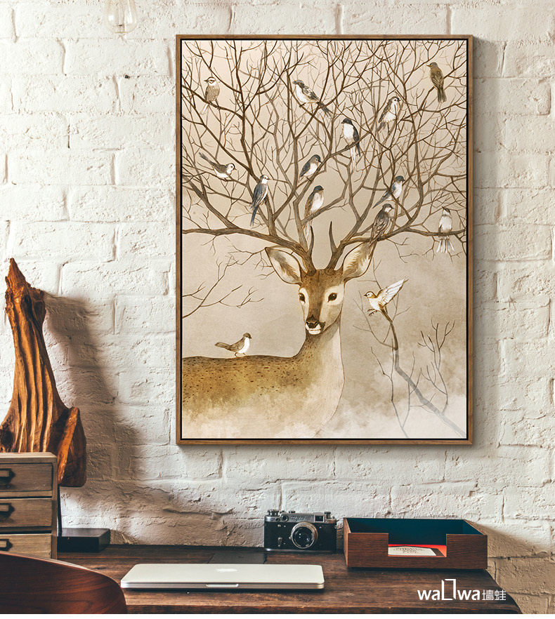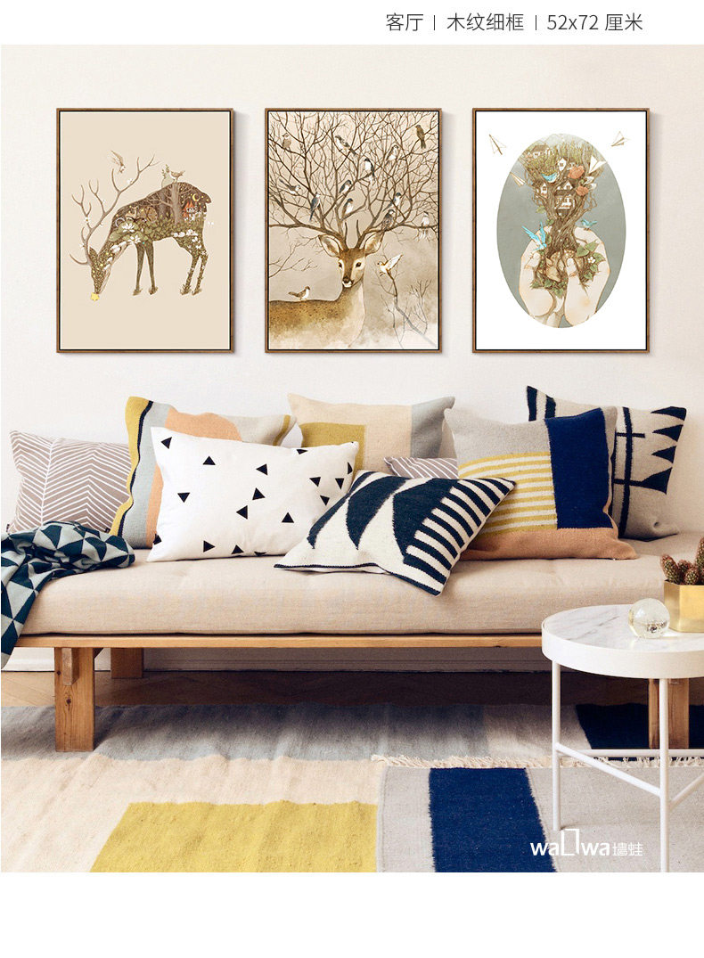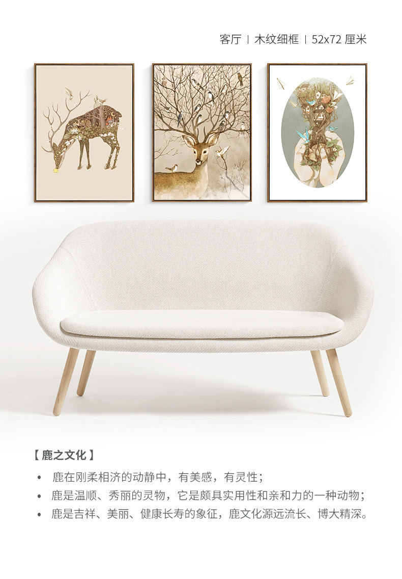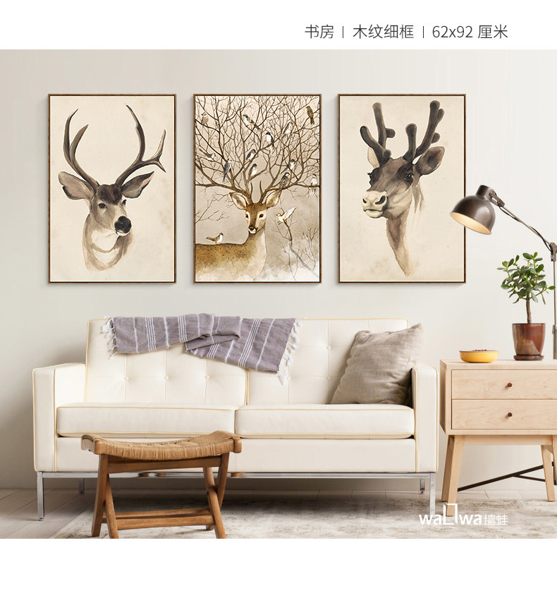 墻蛙麋鹿森林美式客廳裝飾畫沙發(fā)背景墻三聯(lián)掛畫玄關(guān)餐廳臥室壁畫.