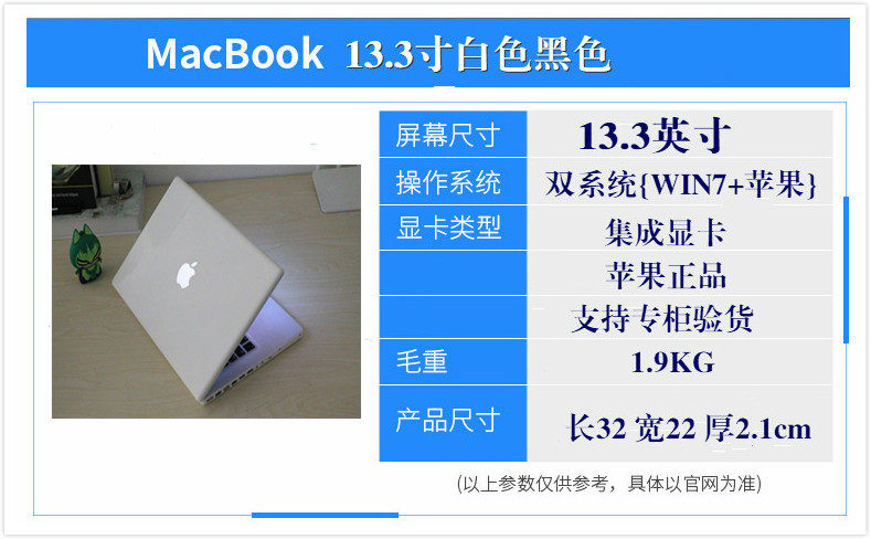 - 顏色分類:白色MacBook13.3寸黑色MacBook13.3寸銀灰色MacBook15.4寸銀色MacBook15.4寸17寸銀色Air11.6寸超薄銀色Air13.3寸超薄銀色Pro13.3寸金屬銀色Pro15.4寸金屬銀色Pro13.3寸視網(wǎng)膜銀色Pro15.4寸視網(wǎng)膜
