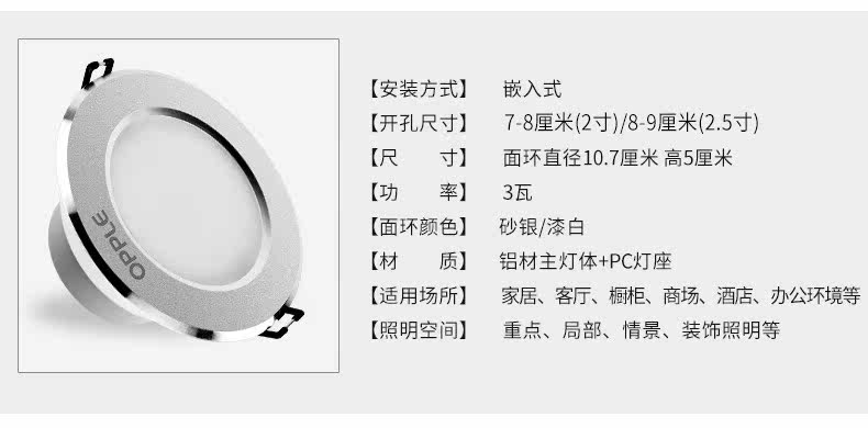 歐普照明 led筒燈3W全套2.5寸防霧開孔8公分天花洞燈9桶燈洞燈價(jià)格行情