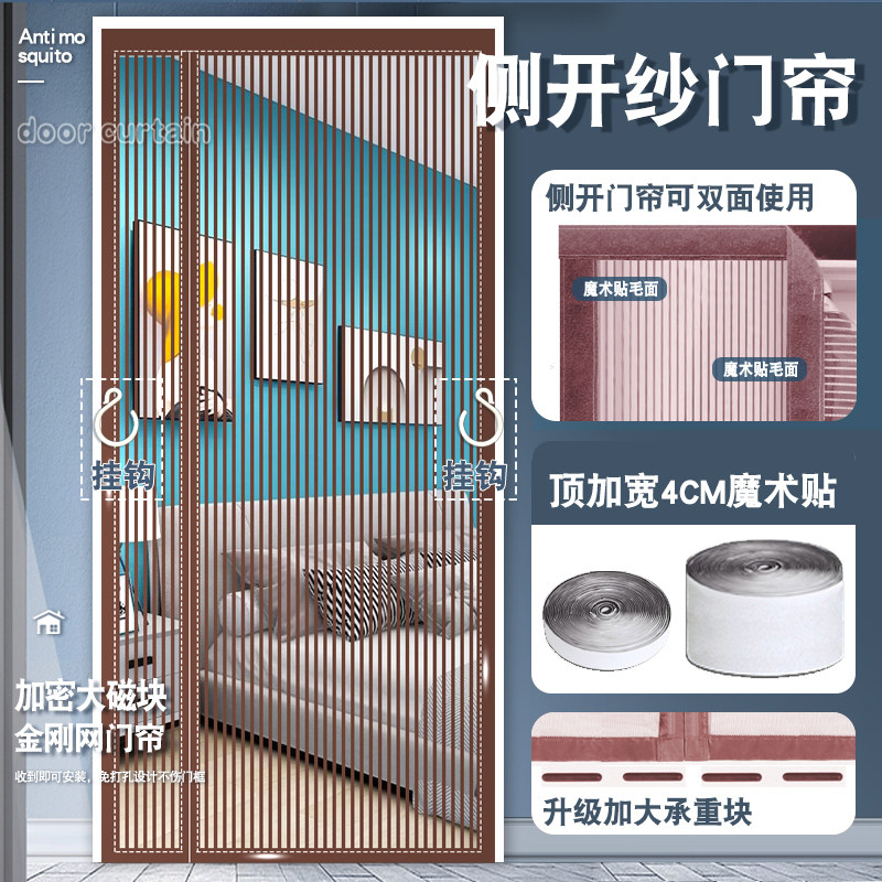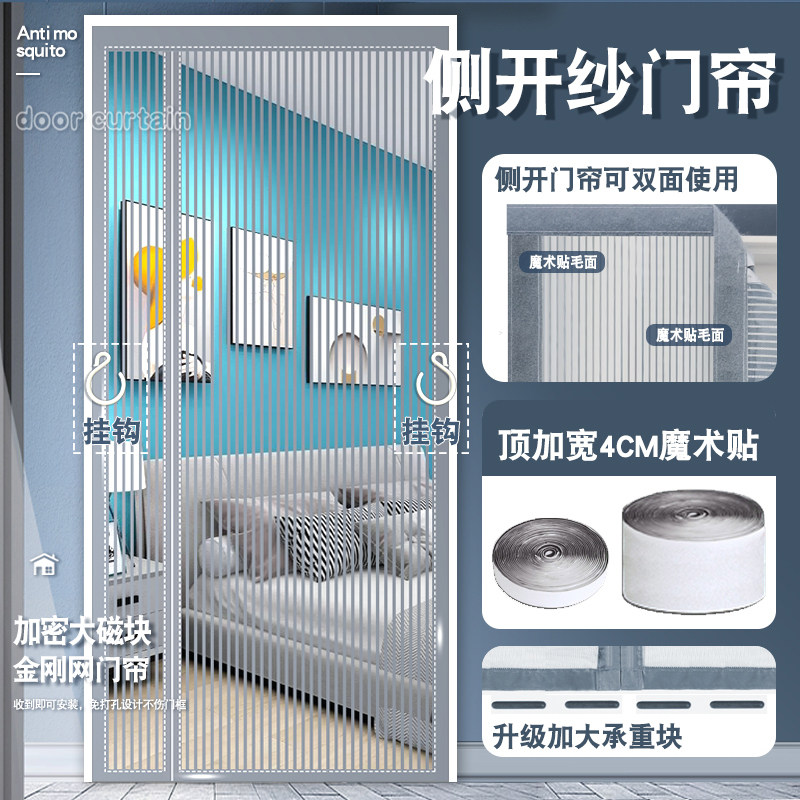側(cè)開(kāi)防蚊門簾新款磁吸魔術(shù)貼臥室紗簾紗窗紗門家用隔斷免打孔自粘