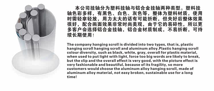 親,現(xiàn)切尺寸的掛軸不接受退貨的哦!鋁合金掛軸有點(diǎn)磨損實(shí)屬正常,安裝好后并不影響美觀!要求太高的親請(qǐng)慎拍!塑料掛軸壓壞的話免費(fèi)補(bǔ)寄!