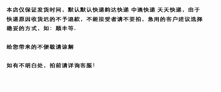 如果無客服直接拍下的,因為沒有確認(rèn)過確認(rèn)圖無法制作,存在漏單的可能,無法按照未按約定時間和缺貨理由退款噢~