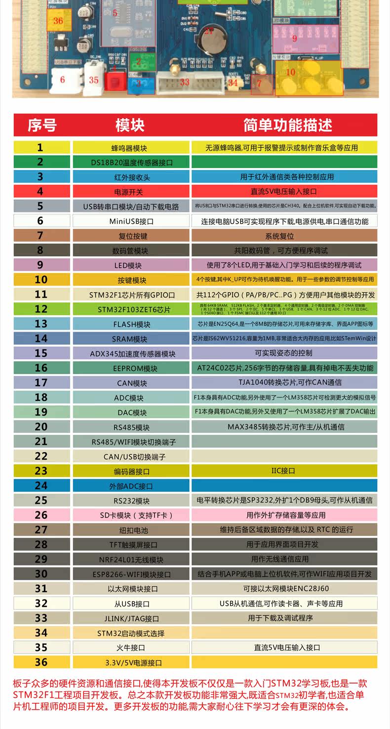 開發(fā)板上含有RS232、RS485、CAN、AD/DA、SPI/SDIO、WIFI、GPS、藍牙、NRF、以太網(wǎng)等接口,因此可以全方位實現(xiàn)常用的通信功能,這個在工控應用項目中非常適用,如RS232、RS485、CAN、SPI等等。真正考慮客戶至上,花非常少的錢買好的東西。