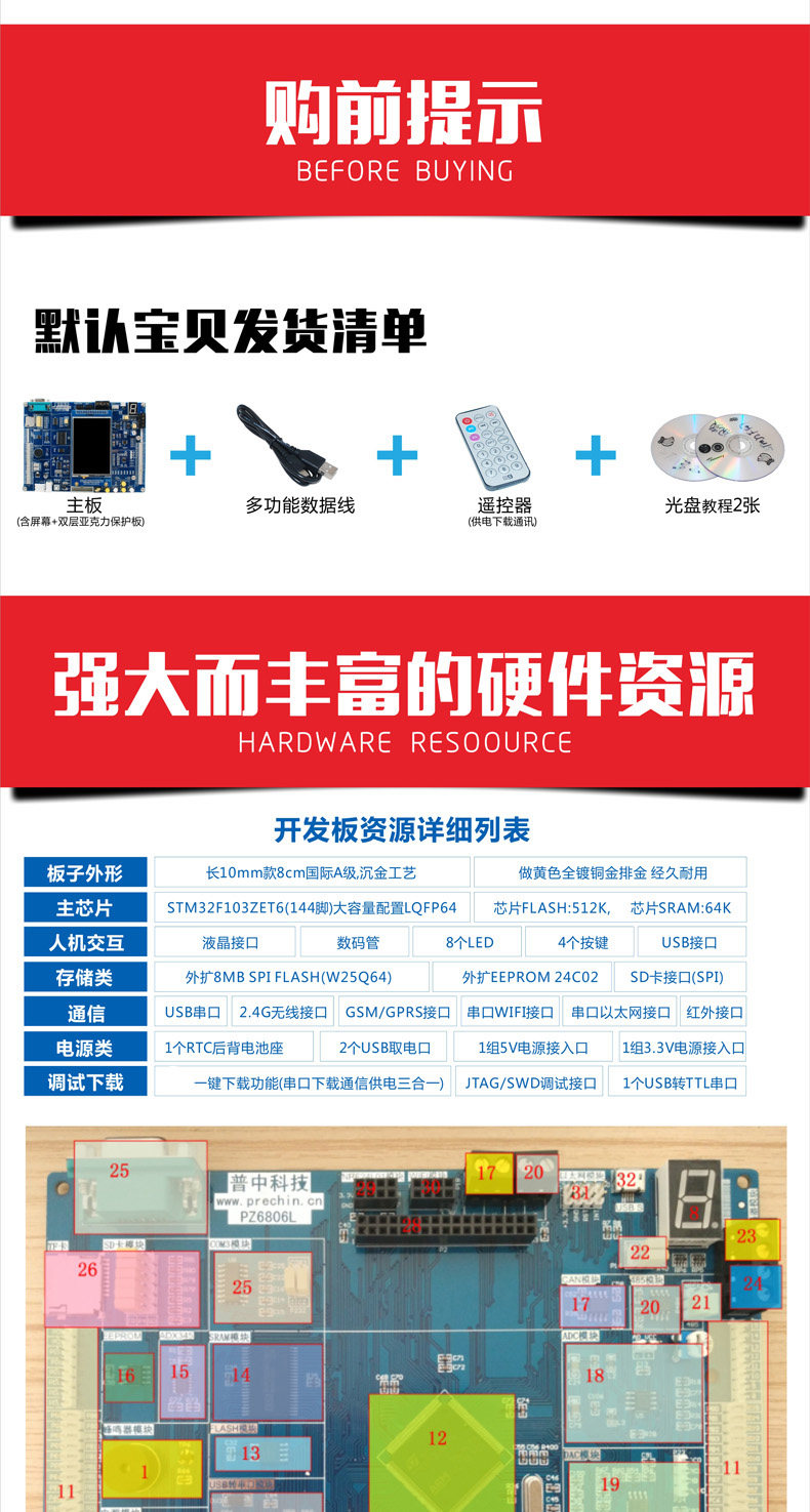普中STM32-PZ6806L開發(fā)板是目前資料很全面豐富的STM32F1開發(fā)板,擁有專為初學者入門及深入而打造的113集手把手開發(fā)講解視頻,全程手把手教你如何寫代碼,以及900余頁《普中STM32F1xx開發(fā)攻略》、《普中STM32F1xx-UCOSIII開發(fā)攻略》、《普中STM32F1xx-STemWin開發(fā)指南》,讓初學者輕松快速掌握STM32F1的開發(fā)。同時該款開發(fā)板也可以作為具有實踐工作經(jīng)驗的嵌入式工程師使用。