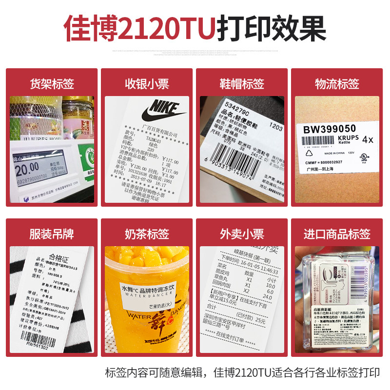 佳博GP2120TU藍(lán)牙熱敏不干膠條碼服裝奶茶杯貼標(biāo)簽吊牌價(jià)簽打印機(jī)價(jià)格行情