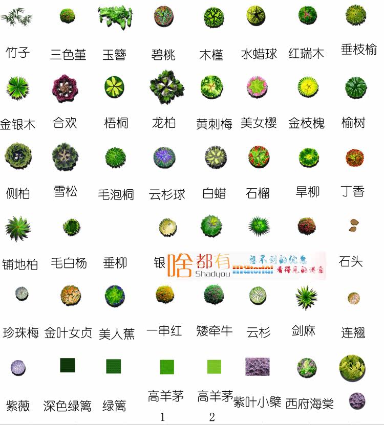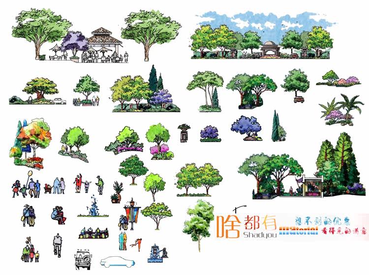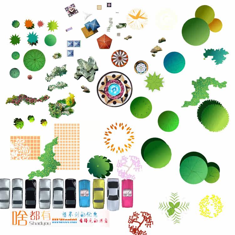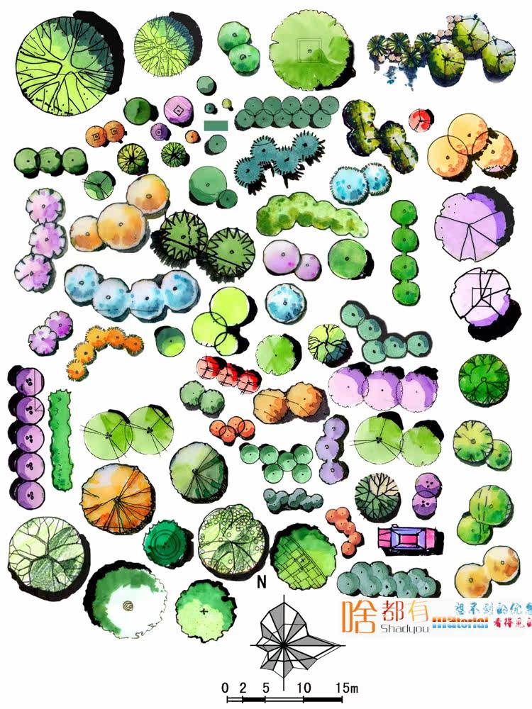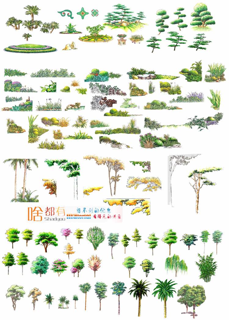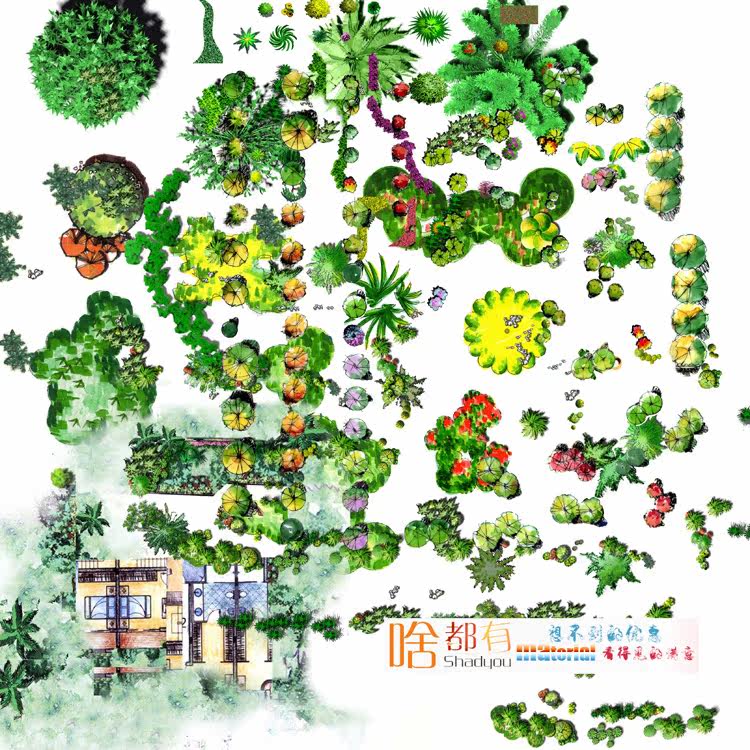 園林景觀彩平圖PSD素材植物手繪輔裝PS后期立面平面圖設(shè)計(jì)效果圖價(jià)格行情